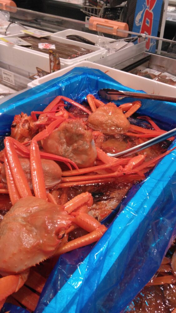 こんにちは!みしまや東川津鮮魚コーナーです!本日は土曜市!お魚コーナーでもお得で美味しい鮮魚を販売中!とくに週末はかにがおすすめとなっております!1杯売りからの販売となっておりますので、ぜひお買い求めくださいませ!