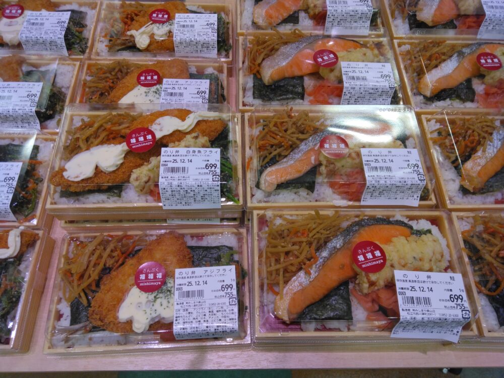 おはようございます。 みしまや楽山店さんぷくです! 今週はみんな大好きのり弁です。 鮭、アジフライ、白身フライと各種取り揃えてます。 昨日は鮭のり弁が早くに完売したので今日は数を増やしました! お客様のご来店をお待ちしております。