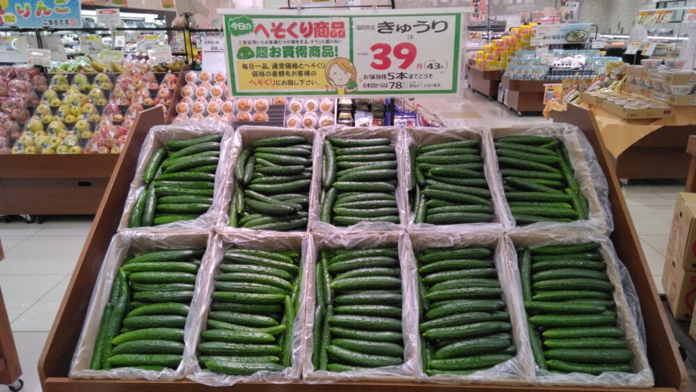 東川津店本日のへそくり商品はきゅうりです。サラダや浅漬けなどに!