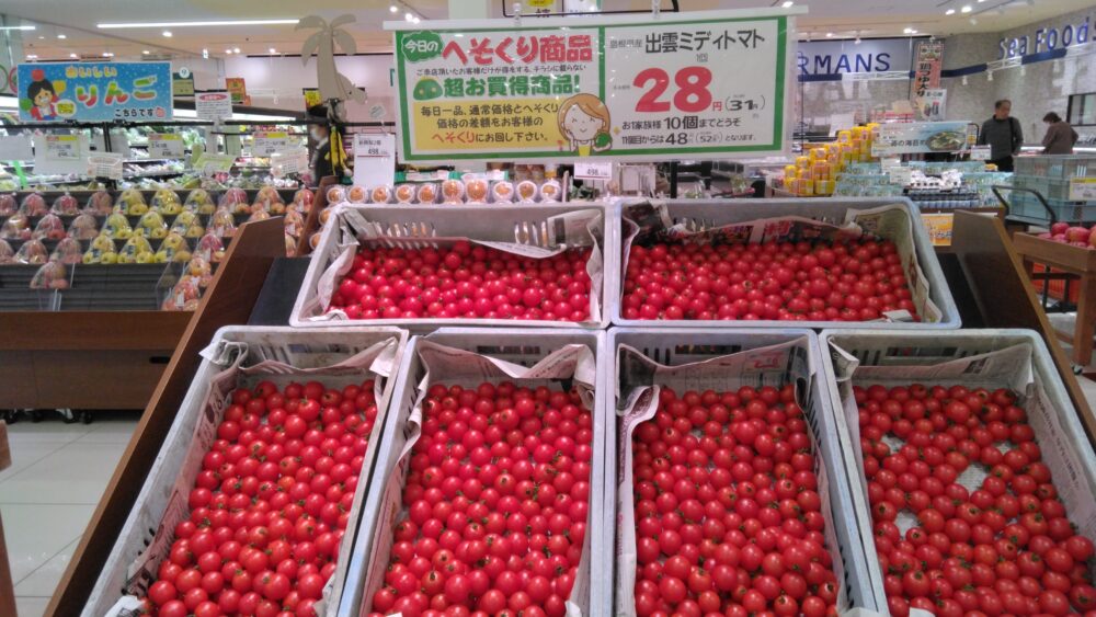 東川津店、本日のへそくりは出雲ミディトマトです! 手軽に栄養が取れておすすめ♪ この機会に是非お買い求めくださいませ!
