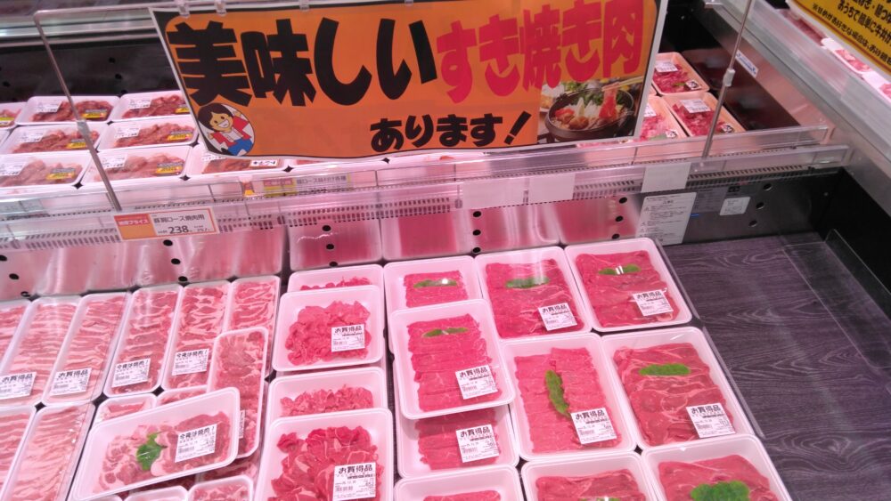 本日みしまや東川津店精肉コーナーからのおすすめは、ニュージーランド産牛モモすき焼き用各種が100g298円(税込価格322円)と、お買い得となっております!是非本日もみしまや東川津店へのお越しをお待ちしております♪