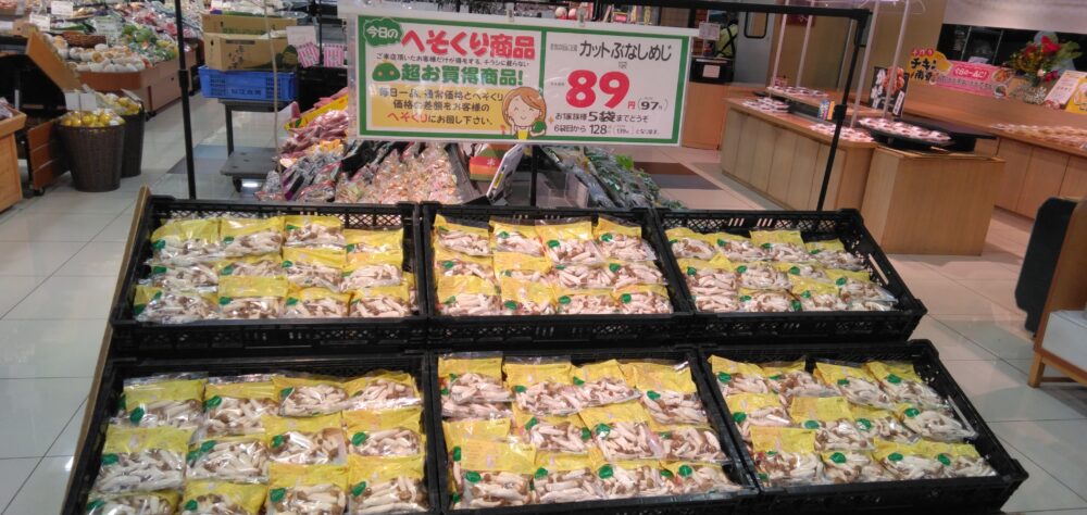 こんにちは、田和山店農産部門です。本日のおすすめはカットぶなしめじです!手間もコストもカットしてあるので大変お買い得でございます。ぜひお買い求めくださいませ。