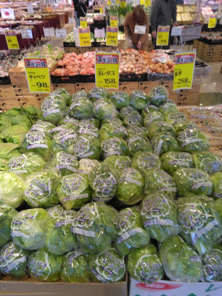 本日は玉レタスがお買い得です。サラダやレタスチャーハン、寒いこの時期はレタスしゃぶしゃぶがおすすめです。