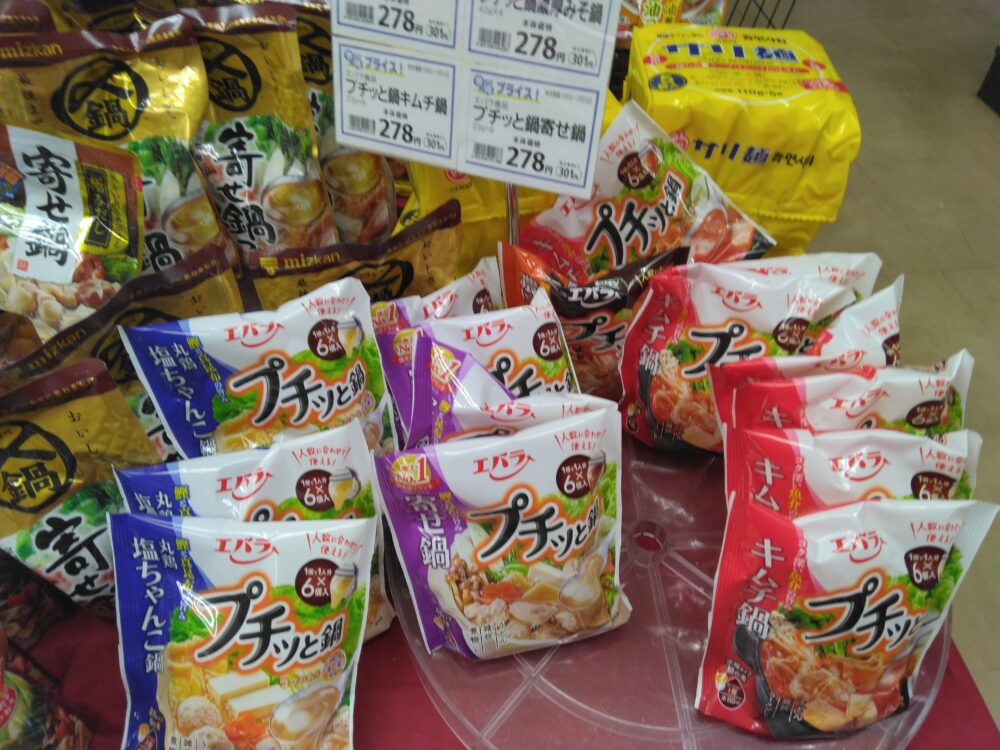 こんにちは八束店です。本日のおすすめはプチっと鍋です。1人前でとても便利です。鍋料理の他炒め物、炊き込みご飯に入れてもとても美味しく仕上がります。お好みの味でどうぞ!