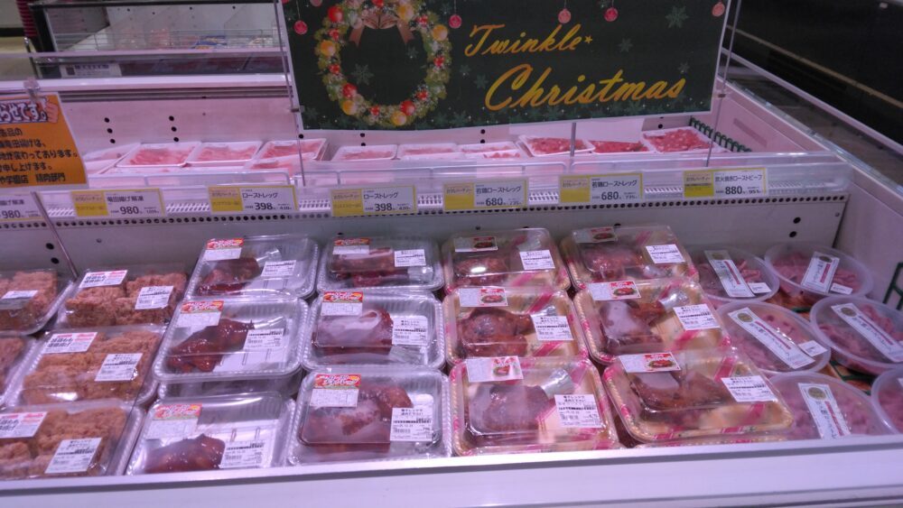おはようございます。本日精肉コーナーからのおすすめ商品はクリスマスの一品にローストレッグはいかがでしょうか! 他にも沢山お買い得商品を取り揃えております 是非この機会にお買い求め下さいませ。ご来店お待ちしております。