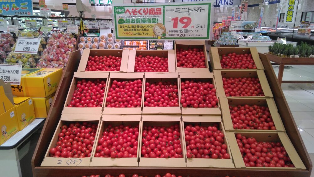 東川津店、本日のへそくりはミニトマトです! 彩りのあるサラダがおすすめ♪ この機会に是非お買い求めくださいませ!