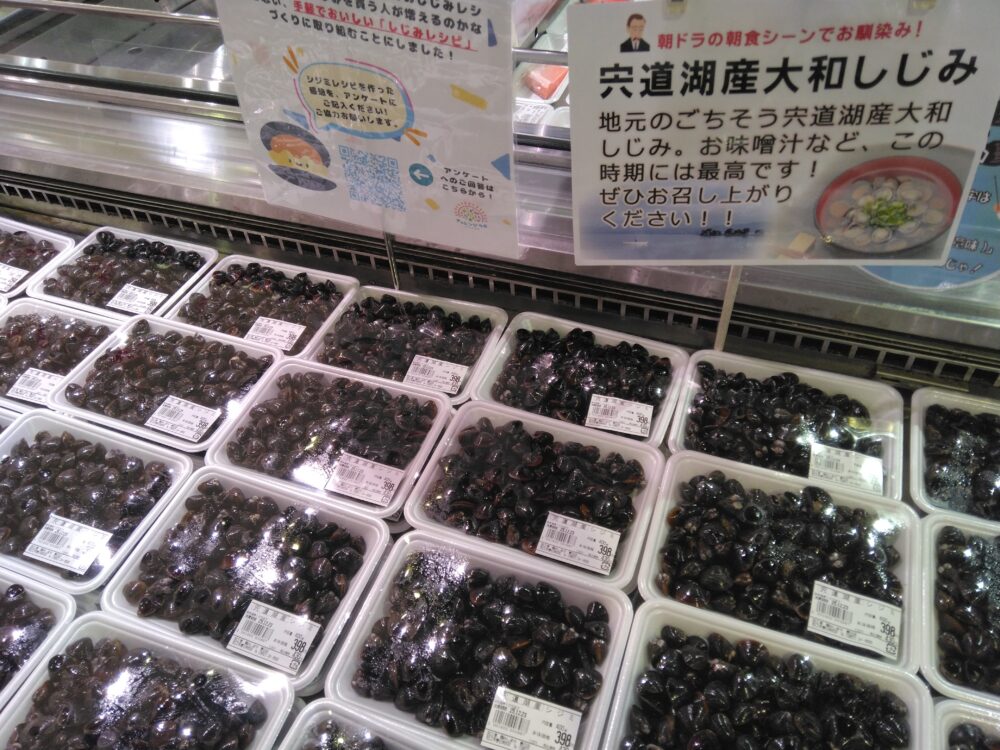 こんにちは!みしまや春日店鮮魚部門です。 本日オススメなのはしじみ! 朝ドラにも出てきた地元のお馴染みですね♪ ぜひこの機会にお買い求めくださいませ(^^)