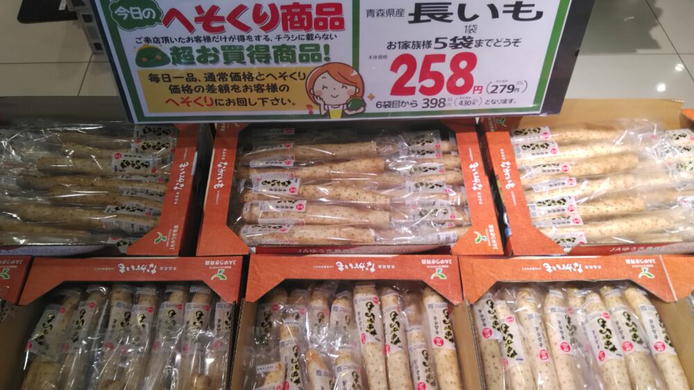 長芋1袋が258円(税込価格279円)です。ぜひご来店お待ちしております。