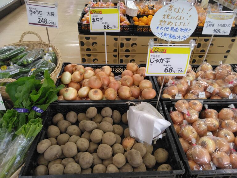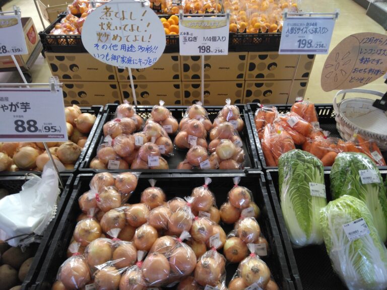 こんにちは八束店です。本日のおすすめは玉ネギです。カレー、煮物いかがでしょうか?その他炒め物など用途はさまざまです。今月のおすすめです。ぜひどうぞ!