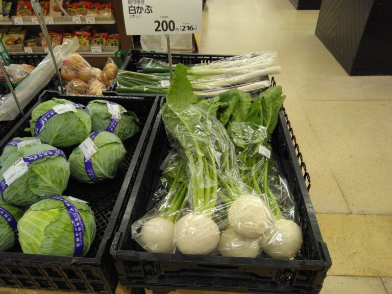 今日のおすすめは、白かぶです。汁物に、煮物にいかがでしょうか、今日は、大変お安くなっております。ぜひお買い求めくださいませ。