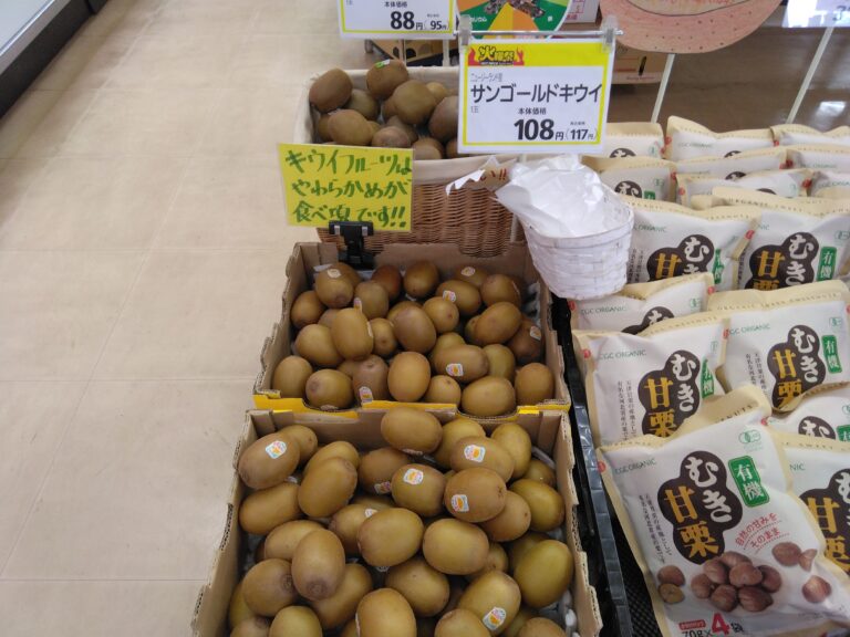 こんにちは八束店です。今日は火曜祭でゴールドキウイがおすすめです。ちょっとやわらかめが甘くておいしいです。食後のデザートにいかがでしょうか?