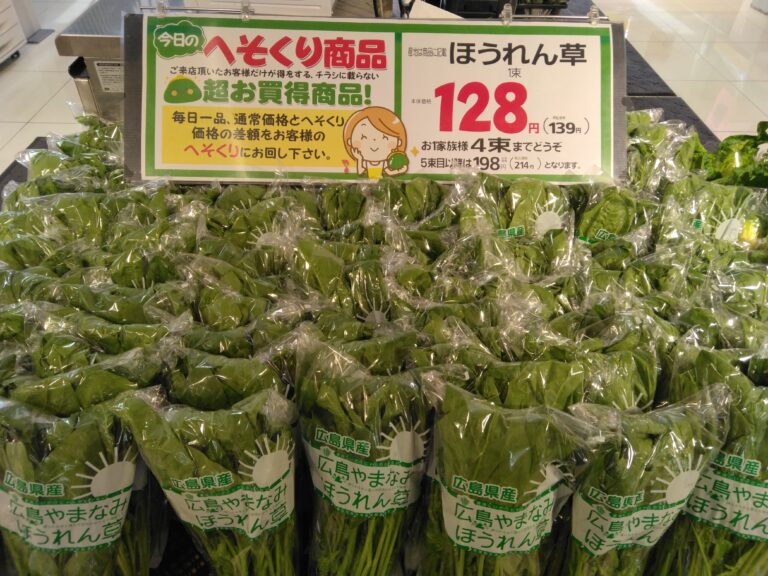本日のおすすめはほうれん草です!和え物がおすすめです!ぜひお買い求め下さいませ!