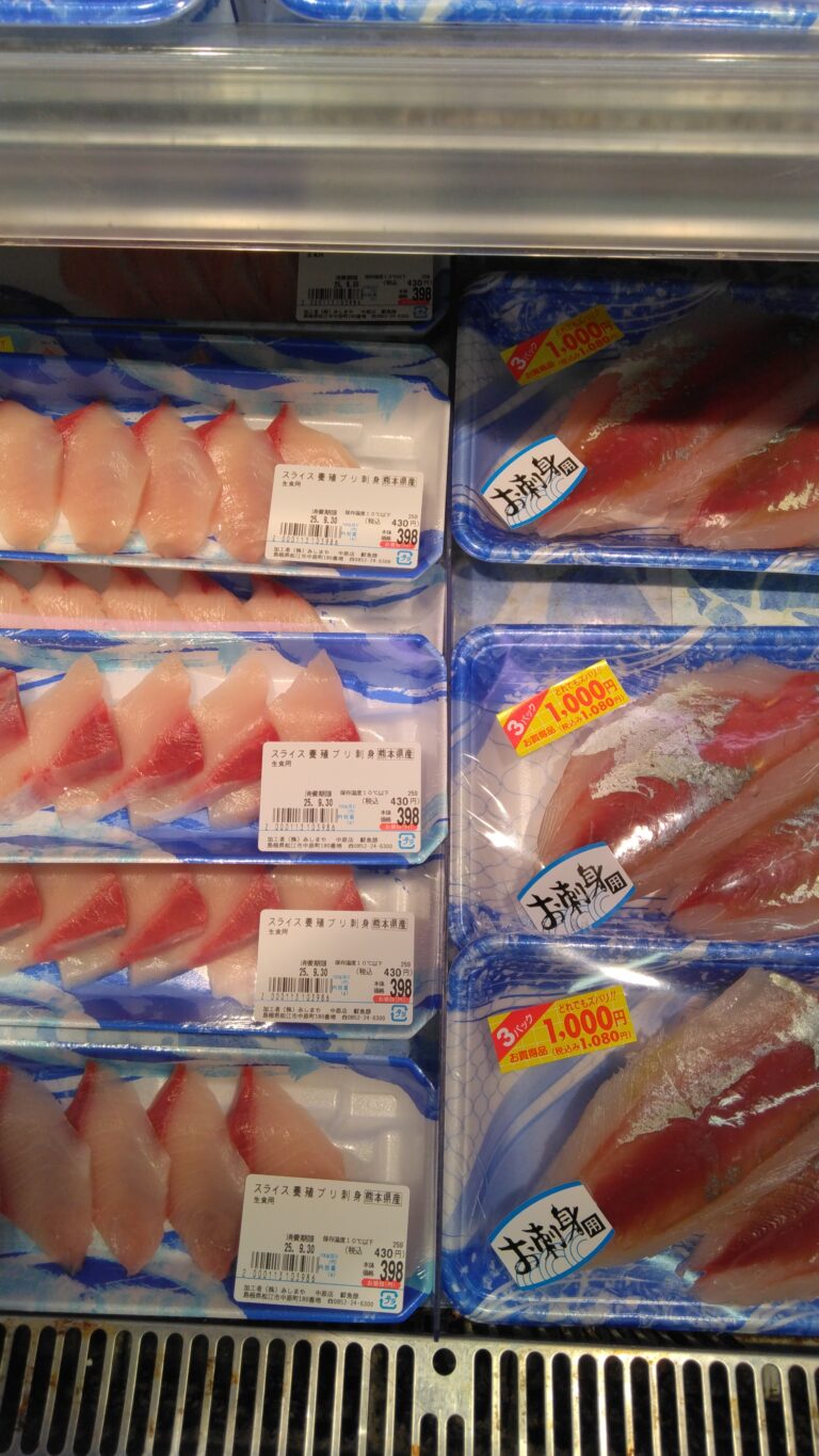 本日は火曜祭です。当店水産コーナーでは毎回好評の3パックよりどり1000円を行っております。お刺身・お刺身用ブロックをはじめ各種取り揃えております。どうぞお立ち寄りお買い求めくださいませします