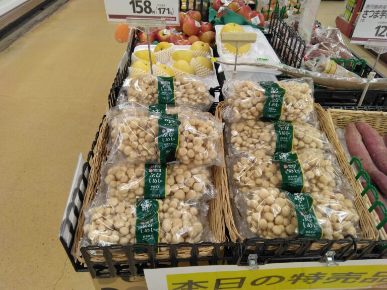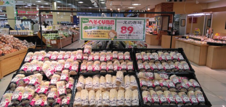 こんにちは、みしまや田和山店農産部門です。本日のおすすめは【えのき茸】です。気温が下がってくる季節にぴったりお鍋の具材にいかがでしょうか。ぜひお買い求めくださいませ。
