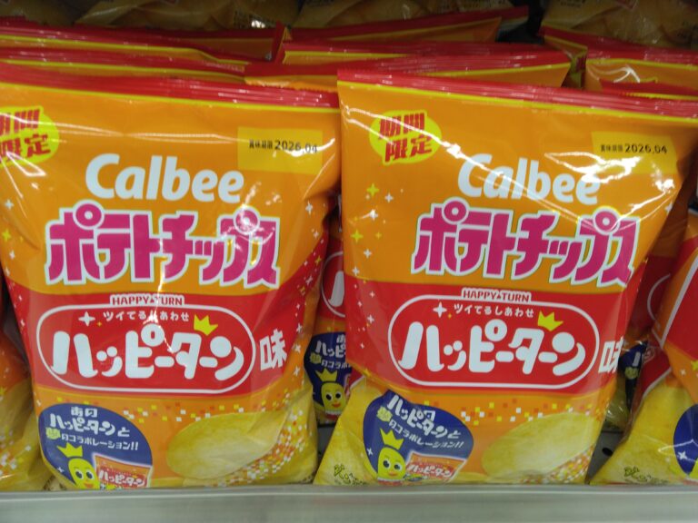 こんにちはみしまや上の木店です。 本日のおすすめ商品は、カルビーポテトチップスハッピーターン味です。 あのハッピーターンと夢のコラボレーション。 ハッピーターンの甘じょっぱい美味しさが楽しめるポテトチップスです。期間限定商品ですので是非この機会にお買い求めくださいませ。
