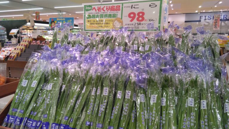 東川津店本日のへそくり商品はニラです。炒め物やお鍋にどうぞ!
