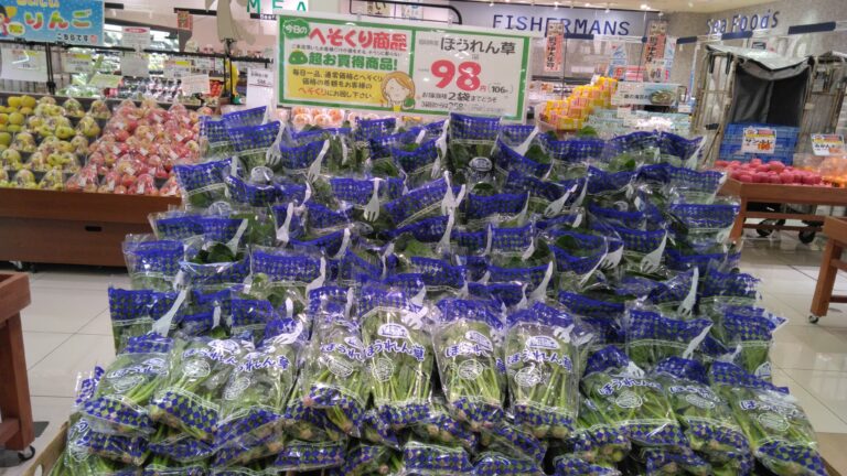 東川津店本日のへそくりはほうれん草です! ほうれん草炒めがおすすめ♪ この機会に是非お買い求めくださいませ!