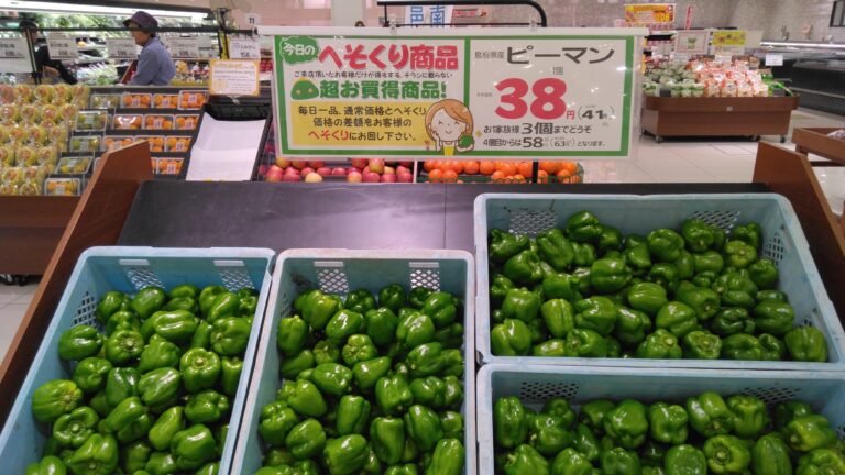 東川津店、今日のへそくりはピーマンです! 炒め物や肉詰めがおすすめ♪ この機会に是非お買い求めくださいませ!