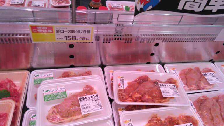 本日みしまや東川津店精肉コーナーからのおすすめはしてアメリカ産豚ロース味付け肉が158円(税込価格171円)と、お買い得となっております!是非お好みの味付けをお選びください。本日もみしまや東川津店へのお越しお待ちしております♪