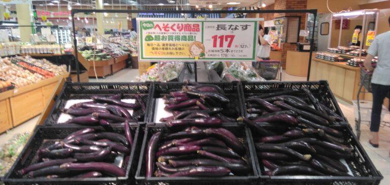 こんにちは、みしまや田和山店農産部門です。今日のおすすめは【長なす】です。揚げなすにしてカレーのトッピングにいかがでしょうか。ぜひお買い求めくださいませ。