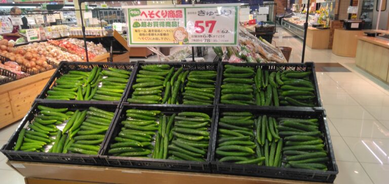 こんにちは、田和山店農産部門です。今日のおすすめはきゅうり1本です!暑い日が続くので酢の物や塩もみにいかがでしょうか。ぜひお買い求めくださいませ。
