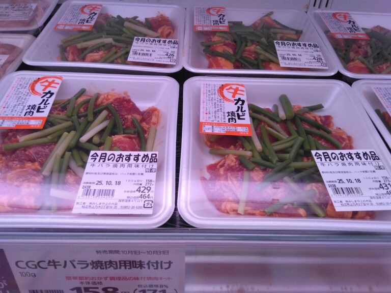 おはようございます、みしまや中央店です。 本日のおすすめは、CGC牛バラ焼肉用味付キットです!味付きなので焼くだけ簡単!ニンニクの芽も入っているのでスタミナ抜群ですよ!10月も後半、焼肉を食べてなんとか駆け抜けましょう!お待ちしております。