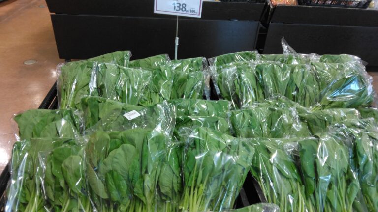 こんにちはみしまや学園店お野菜コーナーです。 お浸し、炒め物などにお弁当にも副菜に大活躍のお野菜です。 是非この機会にお買い求めくださいませ。