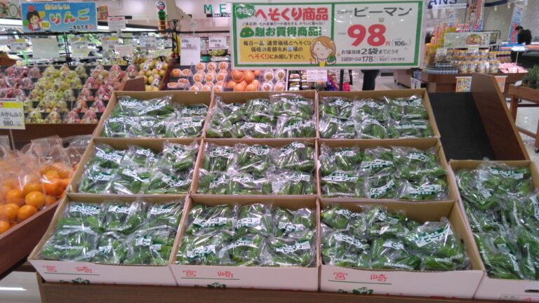 東川津店、本日のへそくりはピーマンです! 野菜炒めがおすすめ♪ この機会に是非お買い求めくださいませ!