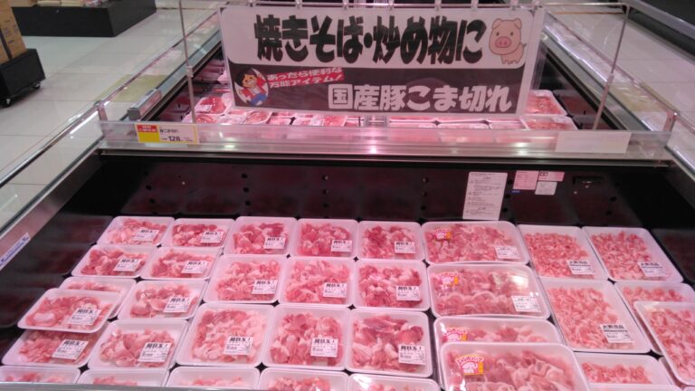 本日のみしまや東川津店精肉コーナーからのおすすめは、国産豚こま切れです。 数量限定ですが、100g128円で販売しております。 無くなり次第終了となりますので、お早めにお買い求めくださいませ。