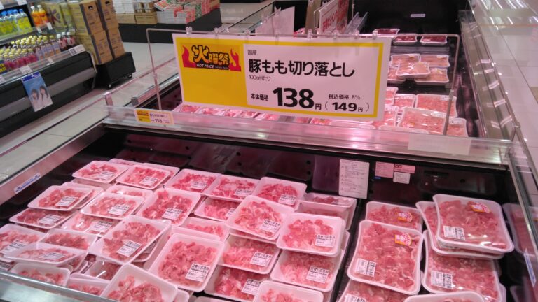 本日みしまや東川津店精肉コーナーからのおすすめは国産豚モモ切り落としが100g138円(税込価格149円)と、お買い得となっております!是非本日もみしまや東川津店へのお越しをお待ちしております♪