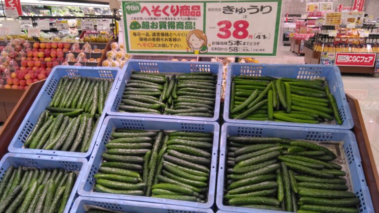 東川津店本日のへそくり商品はきゅうりです。地物の新鮮なきゅうりをどうぞ!