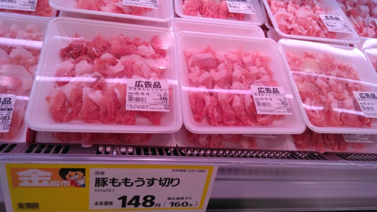 本日みしまや東川津店精肉コーナーからのおすすめは、国産豚モモ薄切りが148円(税込価格160円)と、お買い得となっております!是非しゃぶしゃぶ、炒め物にご活用ください!本日もみしまや東川津店へのお越しをお待ちしております♪
