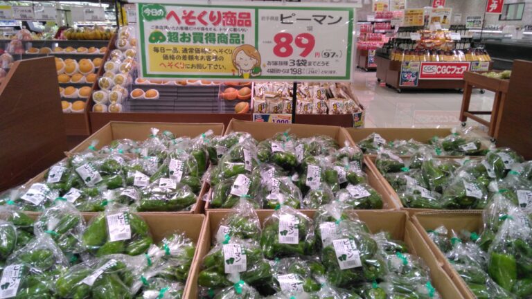 東川津店、本日のへそくりはピーマンです! 野菜炒めやピーマンの肉詰めがおすすめ♪ この機会に是非お買い求めくださいませ!
