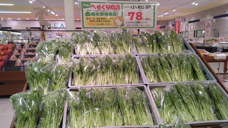 東川津店本日のへそくり商品は小松菜です。炒め物やおひたしなどにどうぞ!