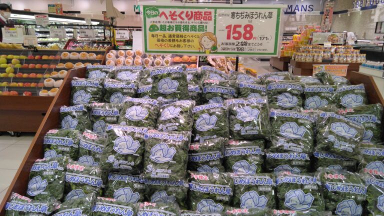 東川津店、本日のへそくりはほうれん草です! ほうれん草のおひたしがおすすめ♪ この機会に是非お買い求めくださいませ!