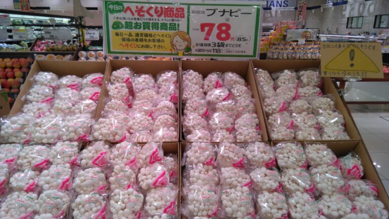 東川津店本日のへそくり商品はブナピーです。きのこの価格が上がりそうです…ぜひこの機会にまとめ買いしませんか?