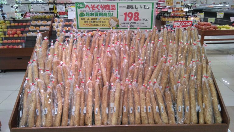 東川津店本日のへそくり商品は長いもです。とろろや短冊、ステーキにしてもおいしい!