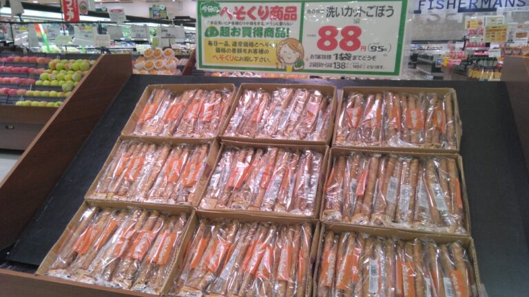 東川津店本日のへそくり商品は洗いカットごぼうです。きんぴらや煮物、唐揚げにしてもおいしい!