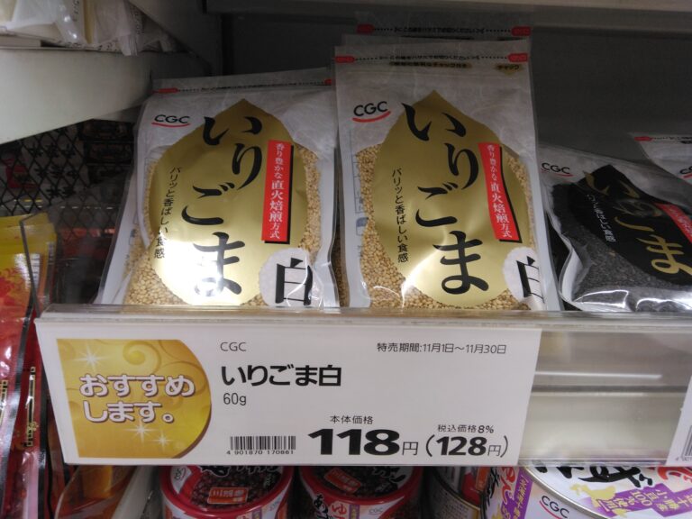 今日はCGCのいりごまのご紹介です。11/5は語呂合わせでいいごまの日だそうです!ごま和えなどお料理には欠かせない存在ですね。香りも豊かで美味しいCGCのごまはいかがでしょうか(^o^)