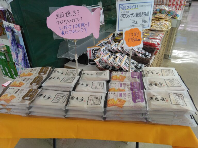 鯛焼きでもクロワッサンでもないお洒落な鯛焼き、二個で1個当たりお安くなりますよ、お茶うけにどうぞ、