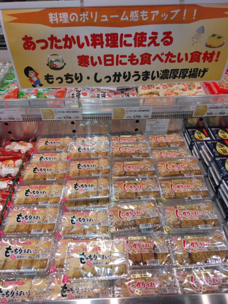 こんにちは、春日店日配です。今日のおすすめは、やまみもっちりうまい濃厚厚揚げです。煮たり、焼いたり、炒めたり、いろいろな使い方ができるので、お料理のレパートリーが広がります!ぜひお買い求めくださいませ。