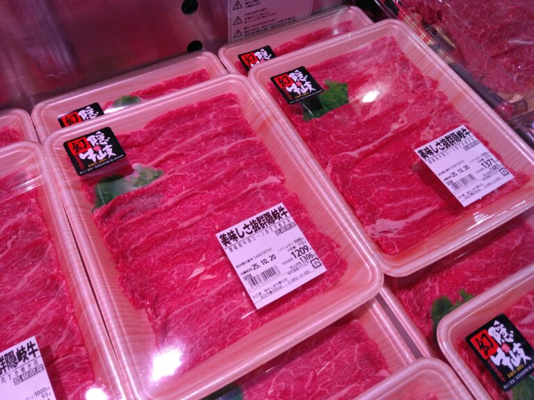 春日店です。本日のおすすめ品は島根県産隠岐牛肩ロース肉すき焼き用です。最近夜は寒くなってきましたね。そろそろすき焼きが食べたくなりますね。春日店では隠岐牛、国産牛のすき焼き用のお肉をご用意しております。是非お買い求めくださいませ。
