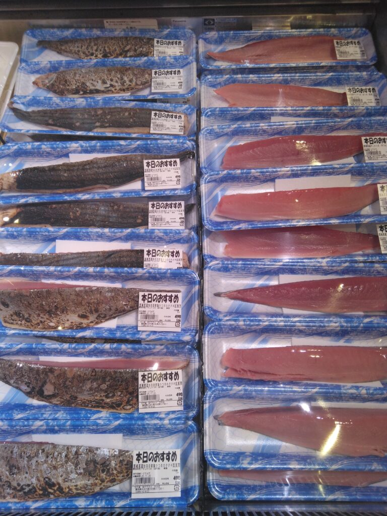 こんにちは、大田長久店です。本日のお魚コーナーからのおすすめ商品は、スジカツオです。本日スジカツオ刺身用1パック 本体価格498円 税込価格538円で販売中です。