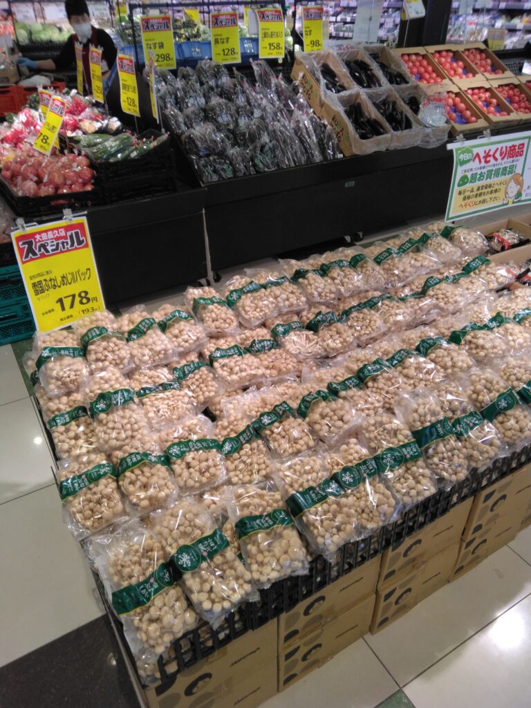 本日はぶなしめじ大袋入りがお買い得です。炒め物や鍋物、味噌汁やシチューの具、炊き込みご飯やパスタなどにもご活用下さい。