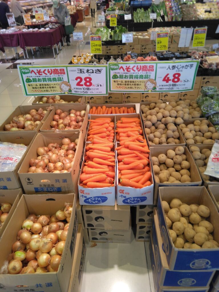 本日は人参、玉ねぎ、じゃが芋がお買い得です。シチューやカレー、炒め物等にお役立て下さい。
