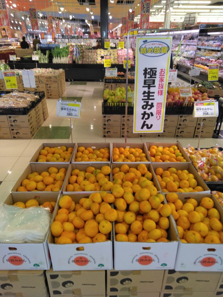 本日はみかんの詰め放題がお買い得です。ぜひチャレンジしていただき、たくさん詰めて下さい。