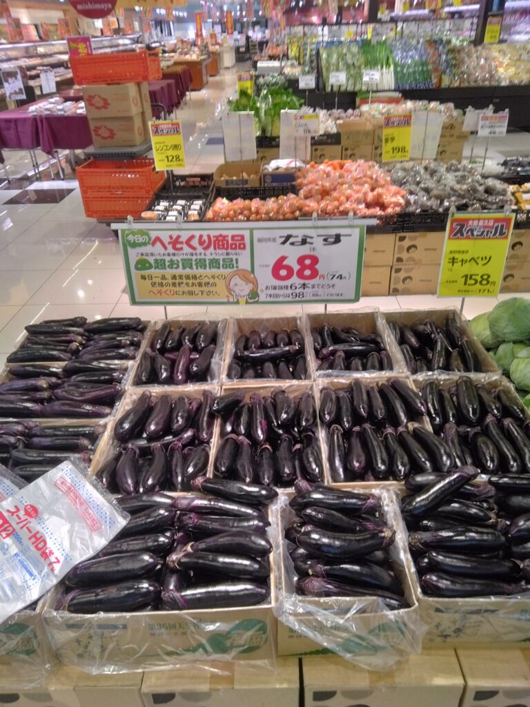 本日は茄子がお買い得です。炒め物、和え物、焼きびたしなどに。麻婆なすおすすめです。