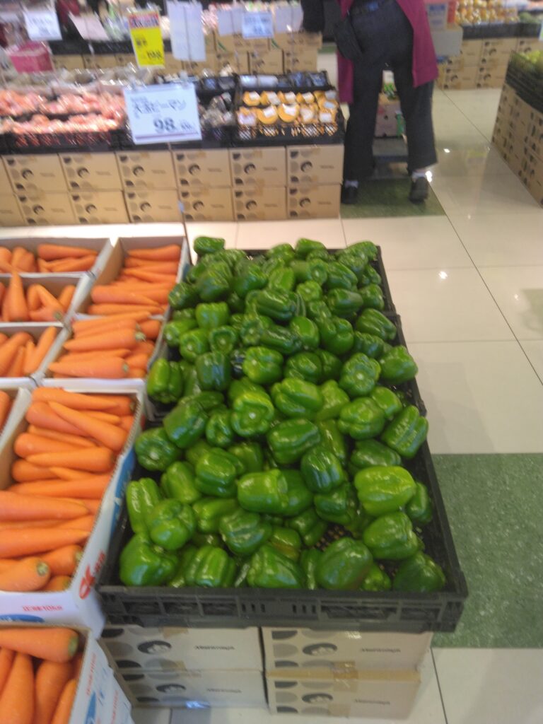 本日は大玉ピーマンがお買い得です。青椒肉絲、大きさを活かしたボリューム満点の肉詰めなどいかがでしょうか。