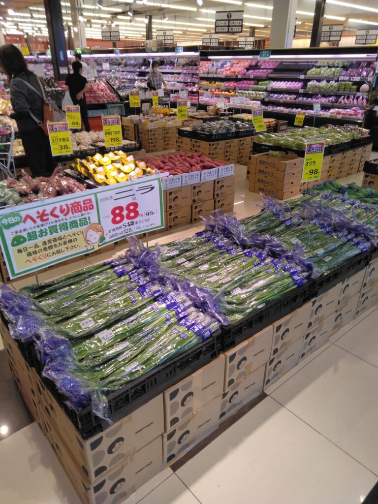 本日はニラがお買い得です。まだまだ暑い日が続きます。今夜はレバニラ炒め、ニラ玉など、スタミナ料理はいかがでしょうか。