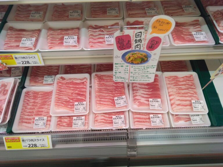 おはようございます!本日のおすすめ品は国産豚バラスライスです!豚バラ肉と焼肉のタレで回鍋肉はいかがでしょうか?お鍋に回鍋肉にと色々な料理に使える豚バラスライス、ぜひみしまや楽山店にてお買い求め下さいませ!